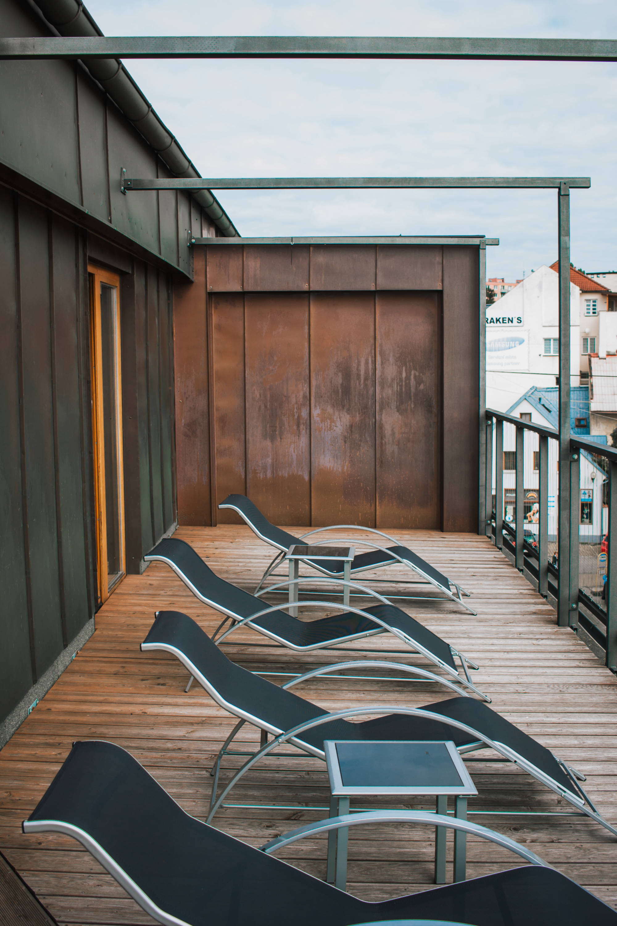Sauny disponují jak vnitřní odpočívárnou s relaxačními lehátky, tak prostornou venkovní terasou, kde můžete na lehátkách odpočívat přímo na střeše budovy a pozorovat tak hřebeny hrubého Jeseníku i centrum města.